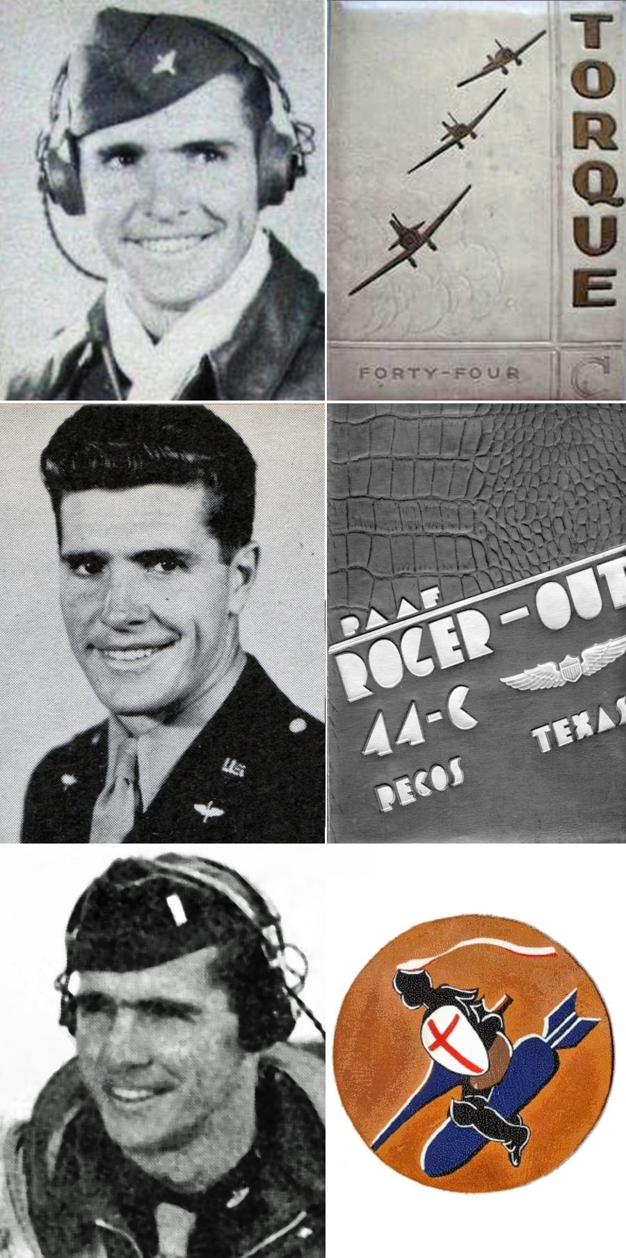 Middle: Charles’ class photo from the class book (Roger-Out) for Advanced Pilot training class 44-C at Pecos Army Air Field, Pecos, Texas, 1944.