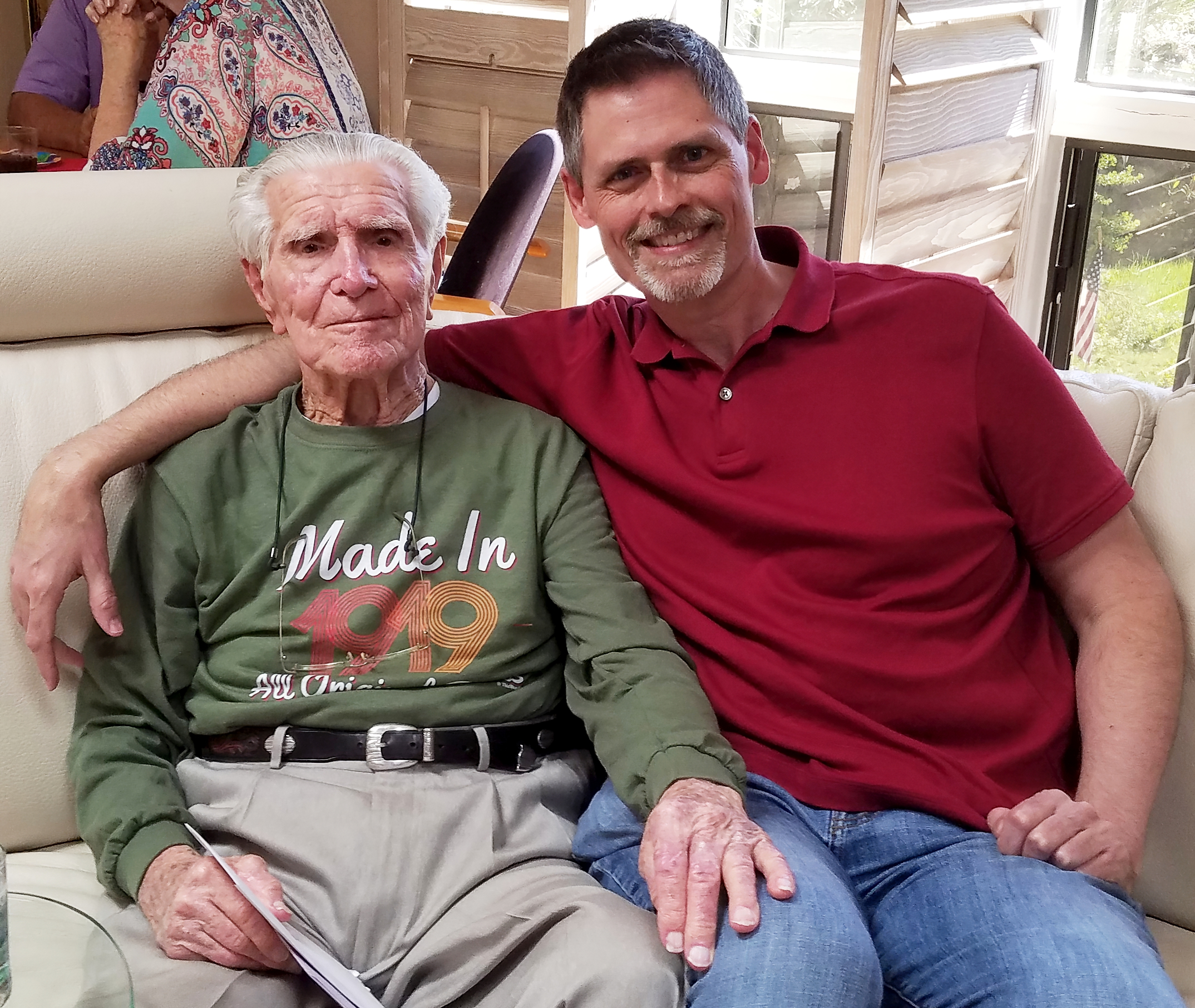 Charles with a B-24 art piece created by his long time secretary who worked with him for 20 years after his service.