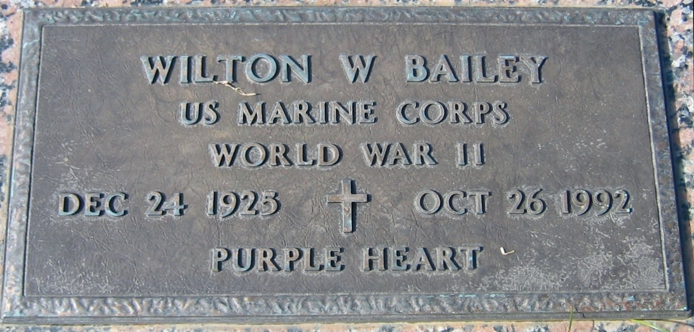 Wilton W Bailey December 24, 1925 - October 26, 1992 Grave markerPrivate First Class, I Company, 3rd Battalion, 28th Marines (Regiment), 5th Marine Division. According to the January and April 1945 Muster Rolls, Wilton was a Bazooka Operator.