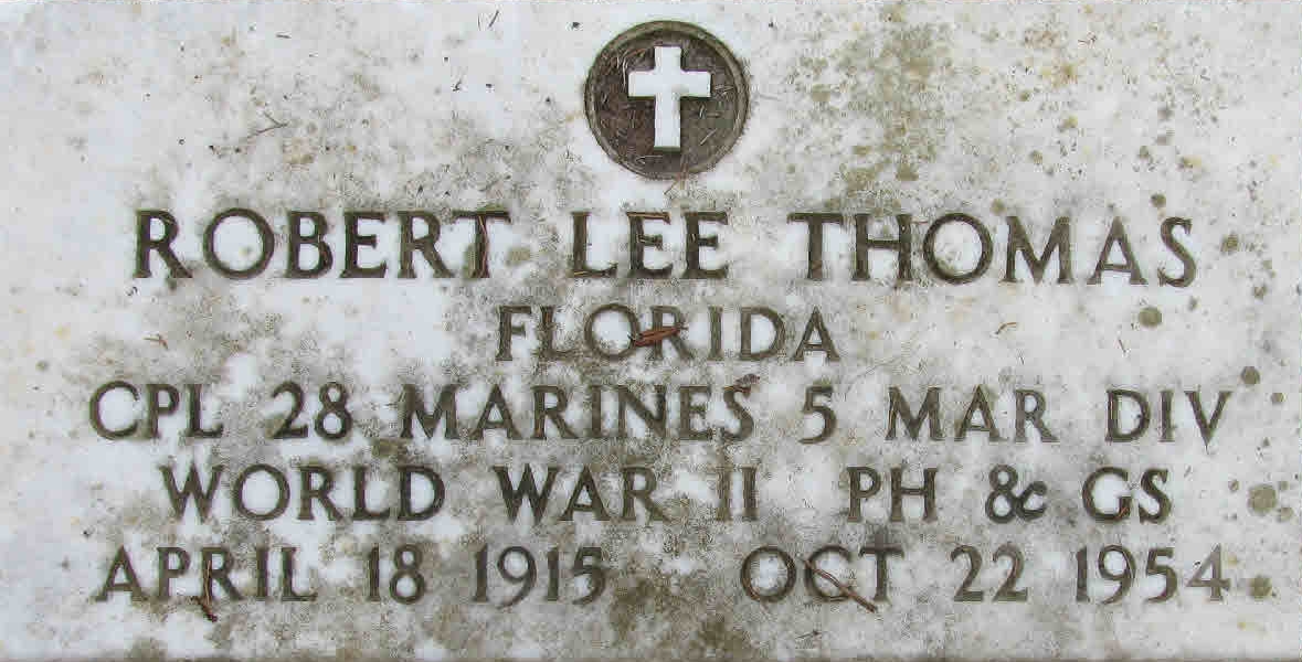Robert Lee Thomas April 18, 1915 - October 22, 1954 Grave MarkerCorporal, Headquarters & Service (H & S) Company, 28th Marines (Regiment), 5th Marine Division.