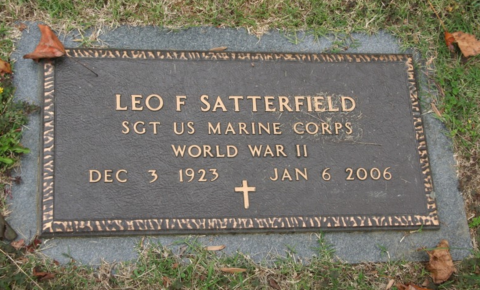 Leo F Satterfield December 3, 1923 - January 6, 2006 Grave MarkerCorporal, Headquarters & Service (H & S) Company, 28th Marines (Regiment), 5th Marine Division. Leo’s nickname while in the service was “Satts”.