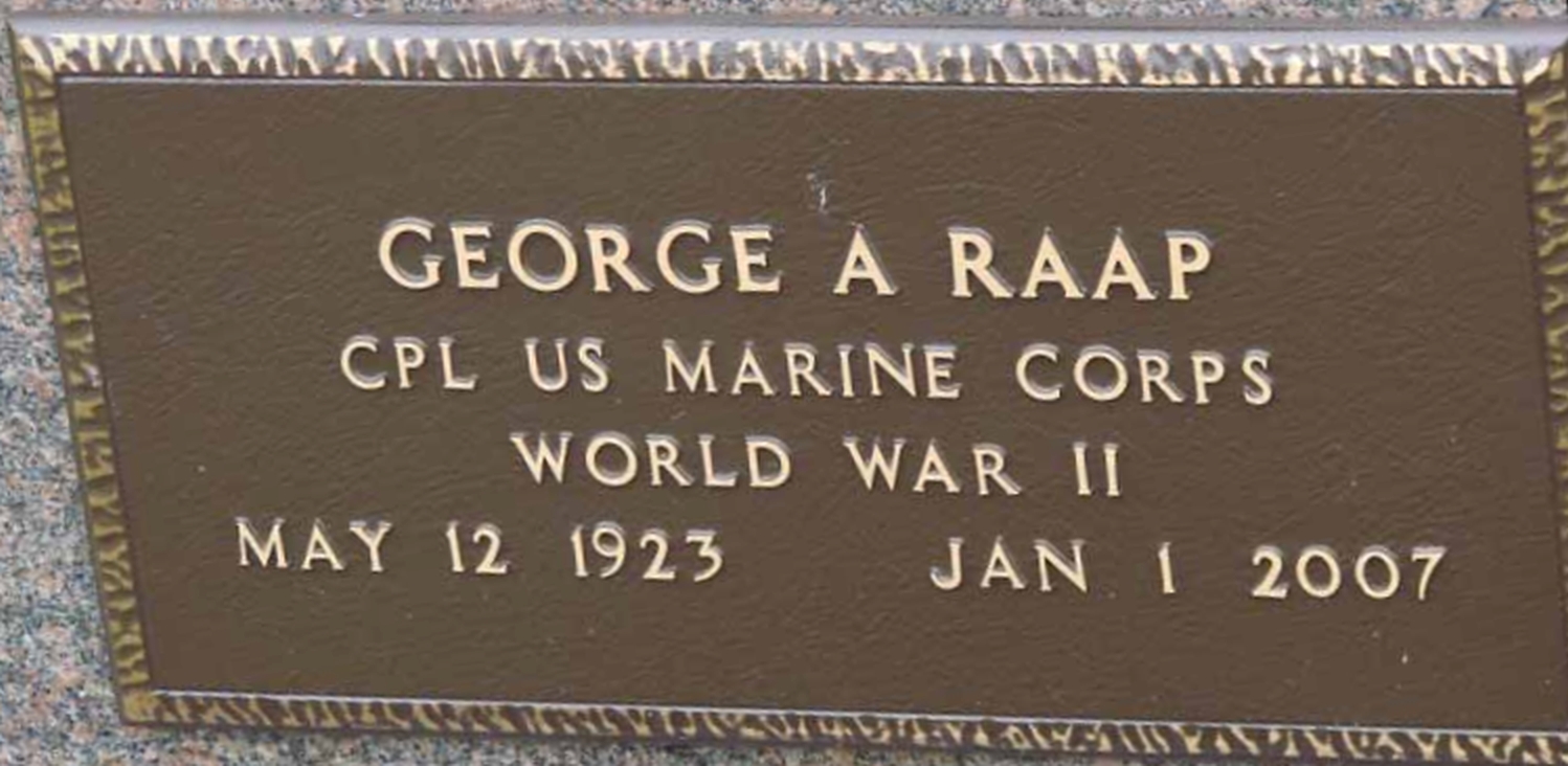 George A Raap May 12, 1923 - January 1, 2007 Grave MarkerPrivate, Headquarters & Service (H & S) Company, 28th Marines (Regiment), 5th Marine Division.
