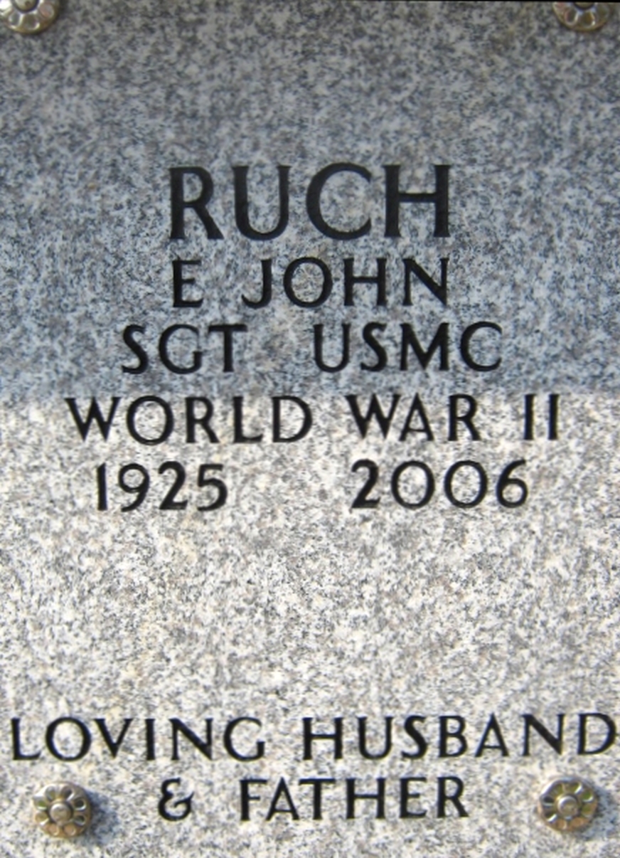 John E Ruch July 18, 1925 - November 18, 2006 Grave MarkerPrivate First Class, I Company, 3rd Battalion, 28th Marines (Regiment), 5th Marine Division.